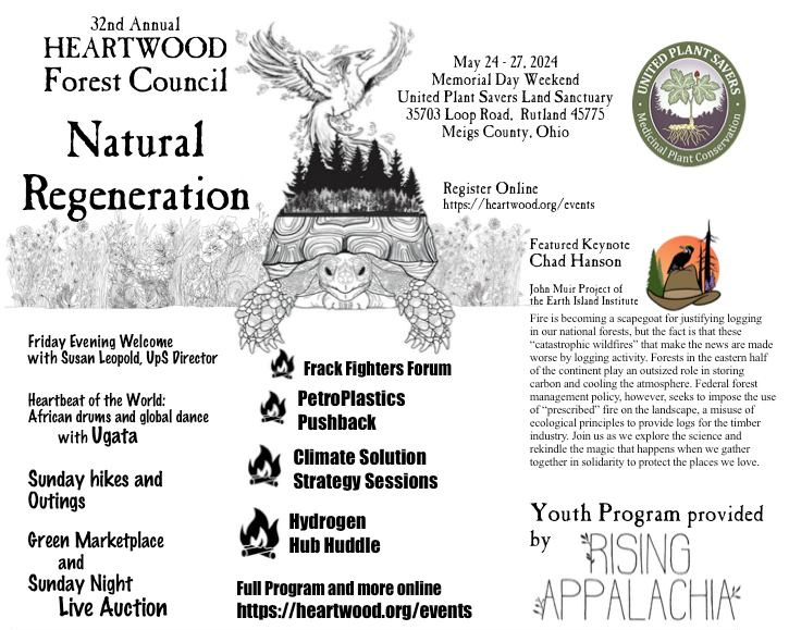 Since 1991, the annual Heartwood Forest Council has been a forum where activists gather to forge the future of the forest protection movement. Each year we meet over the Memorial Day Weekend in a different part of the Heartwood region, to bring regional focus on local issues. This year we are holding the 32nd annual Heartwood Forest Council in southeast Ohio at the United Plant Savers land sanctuary.