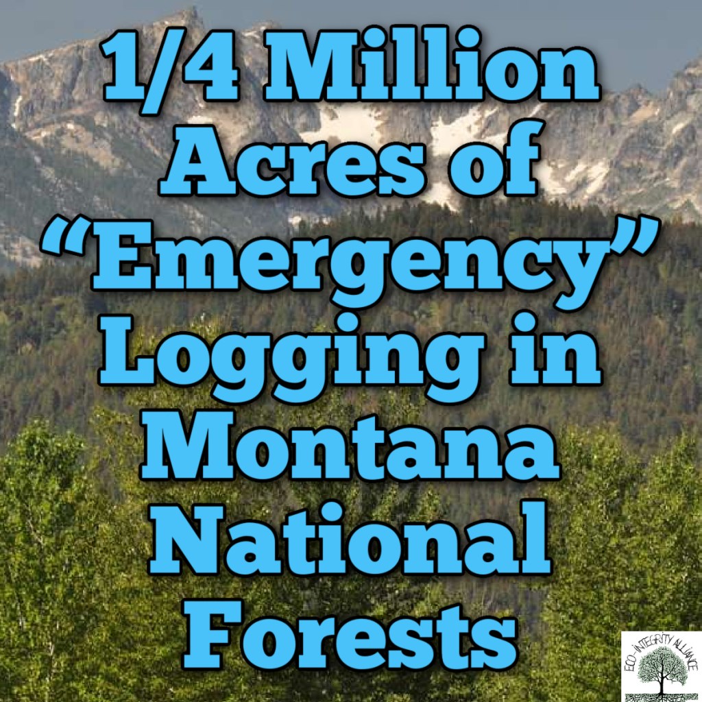 900,368 acres of this “emergency action” logging and burning has been approved or proposed across fifteen National Forests in Montana, California, Colorado, Idaho, New Mexico, South Dakota, and Washington.