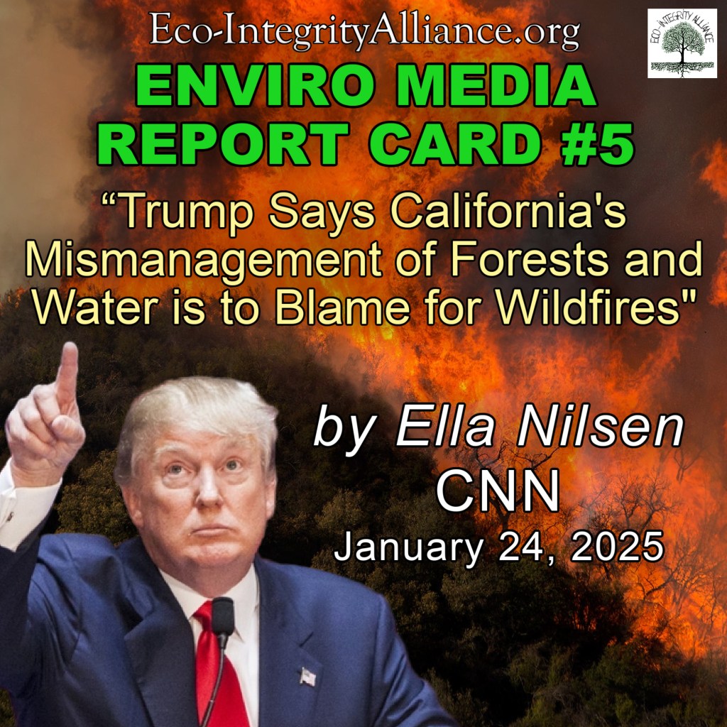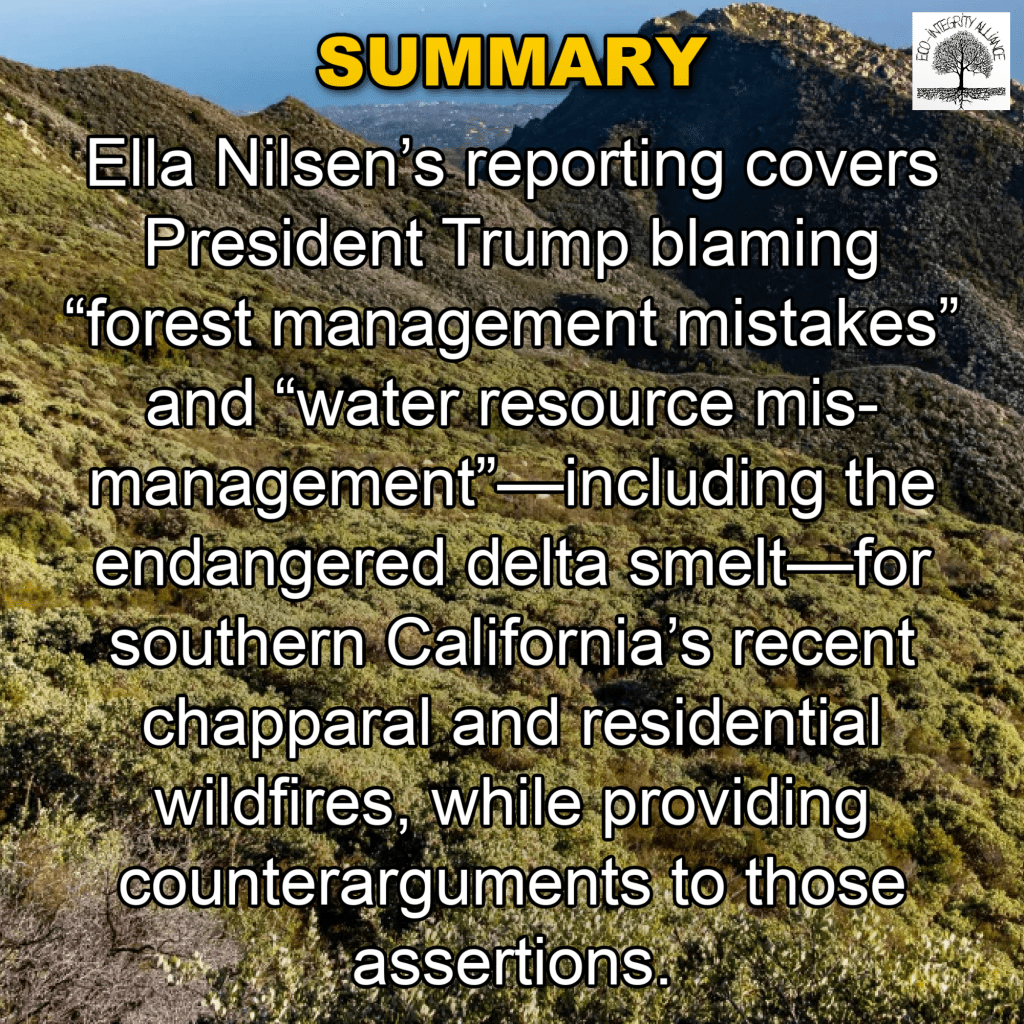 “Trump says California’s mismanagement of forests and water is to blame for wildfires” by Ella Nilsen, CNN, January 24, 2025